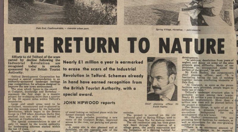 This newspaper cutting from 1976, explains the early work to reclaim the industrial wasteland around Telford including the start of the development of Dale End Park at Coalbrookdale.