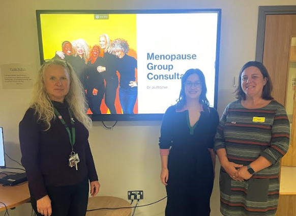 Menopause advocates Sam Hooper, left, and Janine Laming, right, with Dr Jo Ritchie, centre, at the first staff menopause clinic